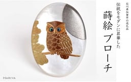 団栗とふくろう蒔絵 白蝶貝ブローチ 縦40mm×横30mm 蒔絵 漆 白蝶貝 フクロウ ふくろう うるしアート ブローチ アクセサリー 伝統工芸 工芸品 国産 復興 震災 コロナ 能登半島地震復興支援 北陸新幹線 F6P-1159