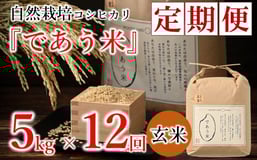 先行予約 米 定期便 5kg 12回 令和7年産 新米 こしひかり 自然栽培 玄米 栄養 豊富 数量限定 お米 こめ おこめ ご飯 ごはん R7 2025年産 こだわり おいしい 美味しい であう米 石川県 能登 羽咋