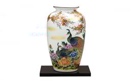[№5784-1135]九谷焼 10号花瓶 牡丹孔雀(台付) a05