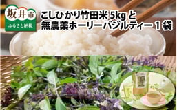【先行予約】【令和7年産・新米】 福井県産 清流こしひかり 竹田米 5kg と 竹田産無農薬ホーリーバジルティー(玄米) 【2025年9月下旬以降順次発送予定】 [A-7422_02]