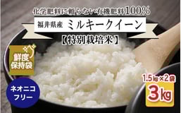 【先行予約】【令和8年産・新米】【特別栽培米】福井県産 ミルキークイーン 1.5kg × 2袋 計3kg (白米) ~化学肥料にたよらない100%の有機肥料~ ネオニコフリー スタンドパック【保存に便利】【2026年10月以降順次発送予定】 [A-13413_01]