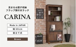 幅60cm オープンとフラップ扉の収納ラック CR-1560DP ブラウン木目 日本製 ≪寄付者様組み立て品≫ 【本棚 絵本棚 キャビネット ハイタイプ シェルフ ラック オープン収納 ディスプレイ リビング収納 リビングキャビネット 新生活 国産】 [G-18811_02]