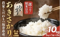 【令和7年度】定期便 ≪2ヶ月連続お届け≫ 農家こだわりの坂井市産 あきさかり 5kg×1袋×2回 (計10kg) 【選べる精米具合:白米 / 玄米】 【米 コメ お米 5キロ ふるさと納税米 ブランド米 国産】 [C-10205]