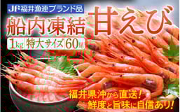 甘えび 特大サイズ60尾 1kg (500g × 2箱) 船内凍結 福井県沖から直送!鮮度と旨味に自信あり【 福井漁連 ブランド品 甘エビ あまえび 1キロ 】 [e12-b007]