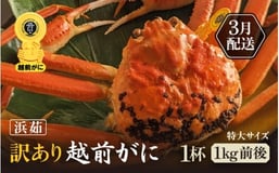 【訳あり】≪浜茹で≫越前がに 特大サイズ 1杯(生で1杯約1kg前後)大人約2人前 食べ応え充分【規格外 雄 ズワイガニ かに カニ 蟹 越前ガニ 姿 ボイル 冷蔵 福井県】【3月発送分】希望日指定可 備考欄に希望日をご記入ください [e65-x006_03]