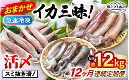 おまかせ定期便 《12ヶ月連続お届け》 計約12kg イカ 三昧! その時期の一番良いイカをお届けします 急速冷凍 活〆 刺身 ヤリイカ ケンサキイカ アオリイカ 【入手困難 いか 烏賊 若狭湾 地物 海産物 新鮮 魚介 海鮮 イカ丼 いか丼 焼きイカ 焼きいか 真空パック】 [m36-o001]
