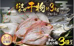 定期便≪3ヶ月連続お届け≫【数量限定】漁場手作り干物 季節の厳選おまかせセット 約1kg 3種以上×3回【詰め合わせ 冷凍 干物セット 人気 アジ カレイ レンコ鯛 あじ ?油漬け カマス ハタハタ ふぐ ひもの 旬の魚 新鮮 海鮮 お任せ ふるさと納税干物】 [m56-c001]