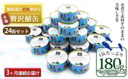 【3ヶ月連続お届け】若狭の鯖缶24缶セット(水煮) 加工食品 魚の加工品 鯖の缶詰 水煮缶 鯖の水煮 鯖の水煮缶 つまみ 調理 食材 魚の缶詰 お魚 食品 ストック 塩味 ノルウェー産 ノルウェー産鯖 DHA 便利 手軽 酒のあて [№5580-0683]