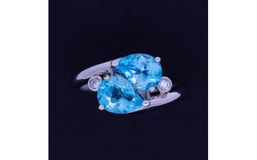 <12号>Pt ブルートパーズ ダイヤモンド 水滴リング【1518852】
