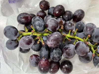 2房入っていましたが、1房は立派な大粒でした。もう1房は小粒で袋から出した時にすでに枝から外れている粒がありまして残念でした。紹介文から2房とも大粒のマスカットかとおもいましたが残念です。