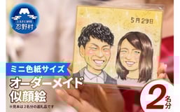本格オーダーメイド 似顔絵 (ミニ色紙サイズ) 2名 ペットも描きます