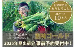 信濃町名産とうもろこし『落影農場の恵味(めぐみ) 10本セット』/スイートコーンの人気品種を早期予約限定で受付中! 【2025年夏のご予約受付開始!】 令和7年7月下旬〜出荷予定 2025年夏出荷分 先行予約【長野県信濃町ふるさと納税】