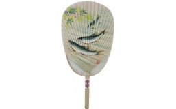 水 うちわ 手描き鮎 二重/加藤清人 (台座付)