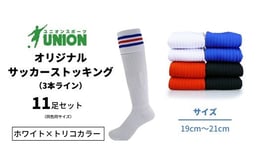 ユニオン(UNION) オリジナル サッカー用ストッキング(サッカーソックス) 3本ライン 11足セット(ホワイト×トリコカラー・19cm~21cm) メンズ 靴下 ジュニア 蹴球 カラバリ 男性 フットサル おすすめ 人気 セット まとめ買い スポーツソックス ストッキング 練習用 試合用 チーム 部活 少年団 中学生 高校生 大人 子供 キッズ 岐阜市/ユニオンスポーツ [ANBS037]