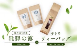 青のほうじ茶 飛騨の露(200g×1袋)+ テトラティーバッグ(3g×12個入り×2袋)| コクのある味わい 飛騨の自然を感じる豊かな風味 お茶 ほうじ茶 ティーバッグ セット お土産 人気 松風園 まつの茶舗 BC009