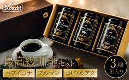 缶入り最高級コーヒー 3種 ハワイコナ 100g ブルマン 100g コピ・ルアク 80g/カフェアダチ 珈琲 コーヒー 自家焙煎 COFFEE 焙煎 ブルーマウンテン ハワイ・コナ コピ・ルアク