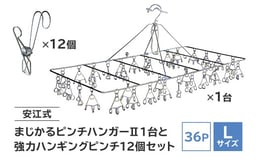 「安江式 まじかる ピンチハンガーⅡ 36P(Lサイズ)」1台と「安江式 強力 ハンギング ピンチ」12個のセット 【岐阜県 日用品 生活雑貨 洗濯物 ステンレス アイデア 便利 簡単 耐久性 洗濯 国産 シンプル ピンチ 折りたたみ 長持ち 超軽量 】