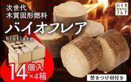 バイオフレア(14個+焚きつけ材 約10kg)×4箱【計56個】 キャンプ 焚火 アウトドア バイオコークス 固形燃料 たき火 サウナ 焚き付け材 焚き付け BBQ 暖炉 バーベキュー【AEJ株式会社】
