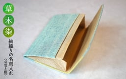 【草木染】紬織り 名刺入れ〈刈安と藍〉