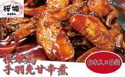 <高木精肉店手作り>桜姫鶏手羽先甘辛煮6本入り×5袋【1488957】