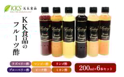 KK食品のフルーツ酢 200ml×6本セット(ラズベリー酢・マンゴー酢・リンゴ酢・ブルーベリー酢・ピーチ酢・ミカン酢) 酢 フルーツビネガー 飲む酢 果実酢 ギフト 贈り物 浜松市 [№5360-0535]