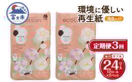 定期便 トイレットペーパー エコロジー ダブル 3回 2パック (1パック12R) エンボス 消臭 ベビーローズの香り 再生紙 環境に優しい SDGs 無地 無色 備蓄 日用品 消耗品 生活用品 毎月発送 富士市 [sf002-491]