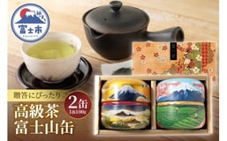 高級茶 まるみず園 富士山缶セット 100g 2缶 贈答 極上煎茶 人気 緑茶 茶葉 茶草場農法 黒ボク土壌 贈り物 ギフト プレゼント おもてなし 飲み物 静岡茶 お茶葉 富士山麓 静岡県 富士市 [sf002-528]