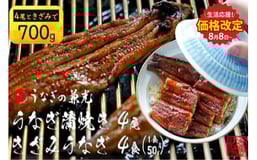 【生活応援】愛知県三河一色産うなぎ蒲焼き4尾+きざみうなぎ2食入り×2パック セット(長焼き4尾で500g+きざみうなぎ(50g×2食)×2パック)小分け 個包装 国産 蒲焼 タレ付き うなぎの兼光 うなぎ 鰻 ウナギ たれ セット 冷凍 簡単 時短 ギフト ひつまぶし うなぎ丼 うなぎ重 人気 U024-23-c0