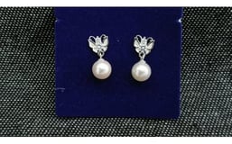 O-79伊勢志摩あこや本真珠ピアス・ブラ(バタフライ)SV製
