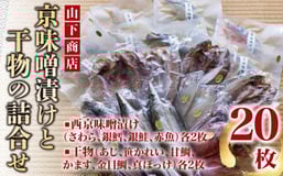 【山下商店】西京漬けと干物の詰合せ 20枚セット(西京漬け4種、干物6種)[京都 専門店 市場 さわら 銀鱈 銀鮭 赤魚 あじ かれい 甘鯛 かます 金目鯛 ほっけ 干物 ひもの 西京漬け 人気 おすすめ 冷凍 送料無料 ふるさと納税]