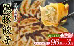 【定期便】黒豚 冷凍餃子 96個 【2ヵ月に1回×3回お届け!】/ グルメ 人気 おすすめ 餃子 惣菜 豚 肉 お肉 ぎょーざ 高評価餃子 おかず 晩ご飯 食品 加工品 大阪府 豊中市 焼き餃子 焼餃子 人気ラーメン店 げんこつ【gnkt0002-tkb】