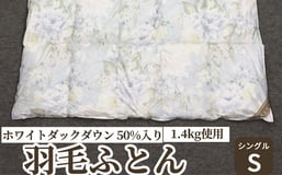 ホワイトダックダウン 50%入り(1.4kg使用) 羽毛ふとん シングルサイズ ブルー色 FNU003 [4617]