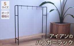 アイアンのハンガーラックSサイズ(オーク棚板付き)