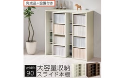 【完成品+設置付き】スライド本棚〔幅90cm〕(選べる2色)本棚 スライド コミックラック コミック収納 漫画 収納 ブックシェルフ 収納ラック 棚 ブックラック 漫画棚 ウッドラック ウッドシェルフ AKONBE400104