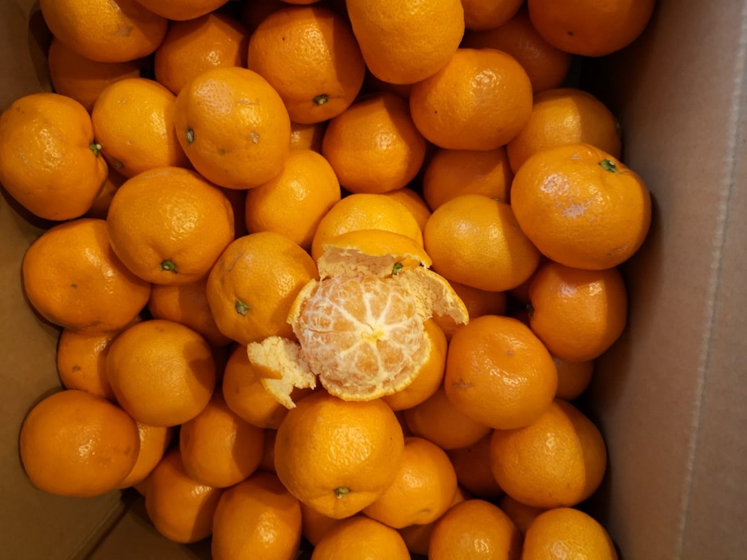 さて、さて、中身は‥とっても綺麗(多少表面に傷あり)な元気の出るオレンジ❤️ミカンのサイズは箱表記はSとされていましたが、近所の八百屋さんではMでも通用するものも含まれおり大満足です。