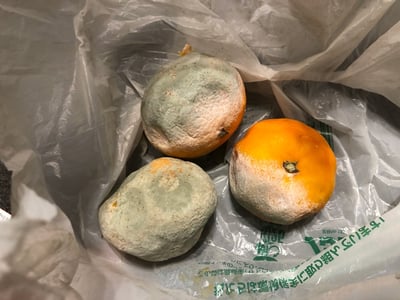 開けてみて、まずカビ臭さを感じました。検品してみるとカビが生えて腐ったみかんがあり、そのまわりのみかんにもカビが繁殖していました。