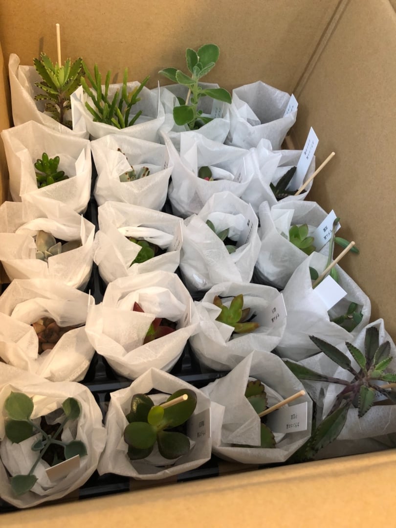 土もこぼれず、多肉が痛むこともなく、安定した梱包で届きました。日頃近くのお店では手に入らないものも多く、窓付きのダンボールをのぞいて感激しました。