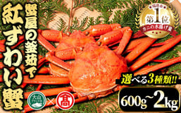 <選べる><先行予約受付中!2025年11月~2026年6月下旬発送予定>蟹屋の釜茹で紅ずわい蟹(600g~2kg)【T-DT1・T-DT2・T-DT3】【大山ブランド会】