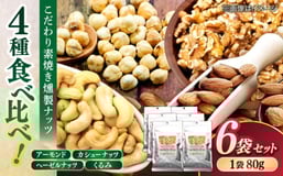 素焼きスモークナッツ 4種ミックス 80g 6袋セット 島根県松江市/株式会社スナハラ [ALFZ003]|ナッツ セット 詰め合わせ おつまみ 燻製 スモーク 島根 松江 おすすめ 人気