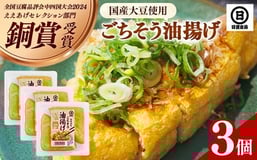 【国産大豆しか使わない】ごちそう油揚げ3個セット【ごちそう 油揚げ 国産大豆 米油使用 分厚い 肉厚 ジューシー 料理 惣菜 おかず ご飯のおとも おつまみ 厚揚げ 美味しい 島根県 安来市】