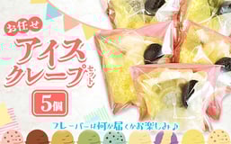 アイスクレープセットお任せ5個入り【クレープ アイス かわいい クマ ウサギ おまかせ 美味しい おやつ お菓子 スイーツ ストロベリー チョコ カフェオレ 抹茶 チョコミント バニラ ブルーベリーレアチーズ キャラメル ギフト 贈り物 おもてなし ご自宅用 島根県 安来市】