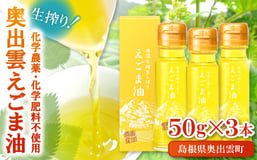 奥出雲 えごま油 50g×3本セット【 えごま油 エゴマオイル 国産 50g 3本 セット 化学農薬不使用 化学肥料不使用 低温圧搾 生搾り 健康食品 植物油 油 ダイエット 健康 美容 ギフト 贈り物 プレゼント 贈答】
