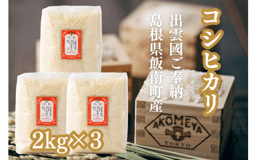 AKOMEYA TOKYO特別栽培米 コシヒカリ 窒素充填2kg×3袋【コシヒカリ こしひかり 真空パック 減農薬 特別栽培米 特栽 贈答用 プレゼント ギフト アコメヤ B-303 】