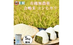 [№5615-0773]おかやま有機無農薬栽培認証 合鴨米 コシヒカリ5kg 有機栽培 オーガニック 農薬・化学肥料不使用 お米 高梁市産 合鴨農法 ブランド米 ツヤツヤ もっちり ふっくら 甘み 岡山県高梁市