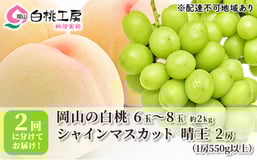 桃 ぶどう 2025年 先行予約 白桃 2kg シャインマスカット 晴王 2房 1房550g以上 2回に分けてお届け!もも 葡萄 定期便 岡山 国産 フルーツ 果物 ギフト 桃茂実苑