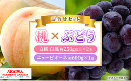 桃 ぶどう 詰合せ 2025年 先行予約 白桃 白鳳 2玉(1玉250g以上) ニュー ピオーネ 1房 約600g 岡山県 赤磐市産 フルーツ 果物 あかいわファーマーズガーデン