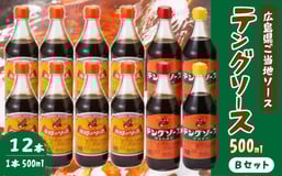 テングソース500Bセット(お好み×8本/半とん・ウスター各2本) 中間醸造 お好み焼き 焼きそば たこ焼き とんかつ 串揚げ 調味料 天狗 ソース お好みソース 001018