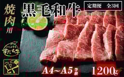 定期便 3回お届け すだち牛 黒毛和牛 ( 焼肉用 ) 1.2kg 合計3.6kg 国産 牛肉 焼き肉 焼肉 赤身 冷凍 お肉 肉 ブランド 和牛 霜降り カット 人気 定期便