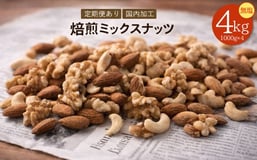 焙煎ミックスナッツ 3種 無塩 4kg (1000g×4袋) [ ミックスナッツ ナッツ アーモンド くるみ カシューナッツ 自家焙煎 焙煎ナッツ 無添加ナッツ 健康おやつ 健康習慣 大容量ナッツ お取り寄せ おつまみ おやつ 食塩不使用派 ナッツ好き 人気返礼品 香川県 三豊市 本気モード ]