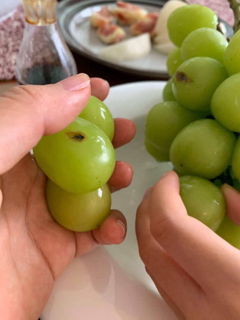 訳ありとは書いてあったものの、大きな粒のものは中が空洞になっていてところどころ粒の中や周りに茶色ものがあり、小さな粒の色の悪いものはシャインマスカットなのに種がありました。